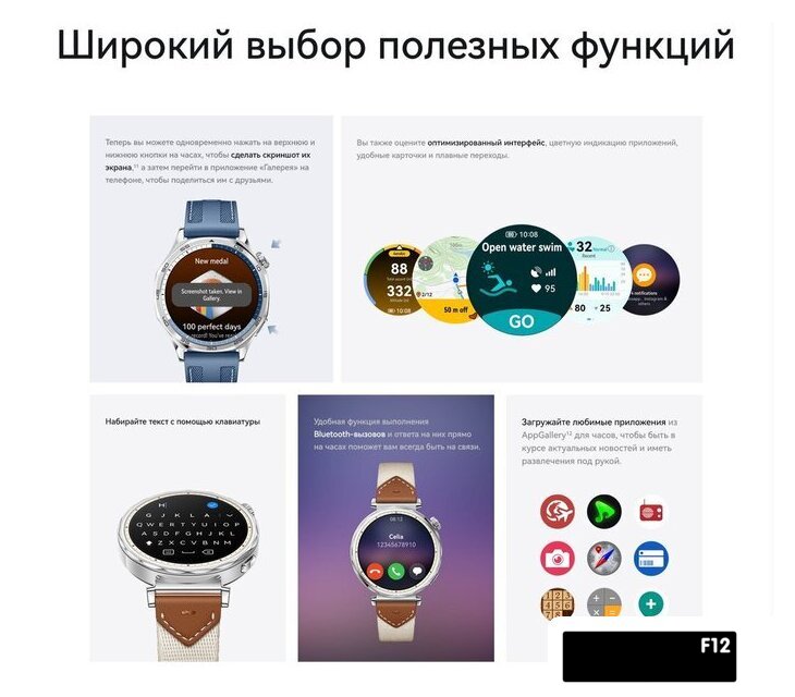 | Дополнительные функции | отслеживание сна, отслеживание уровня стресса, отслеживание женского здоровья, подсчет потраченных калорий, дыхательные упражнения, таймер, секундомер, компас |
